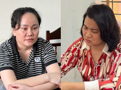Hai đối tượng Lê Thị Thanh Thủy và Hoàng Thị Ngọc Thúy tại thời điểm bị bắt.
