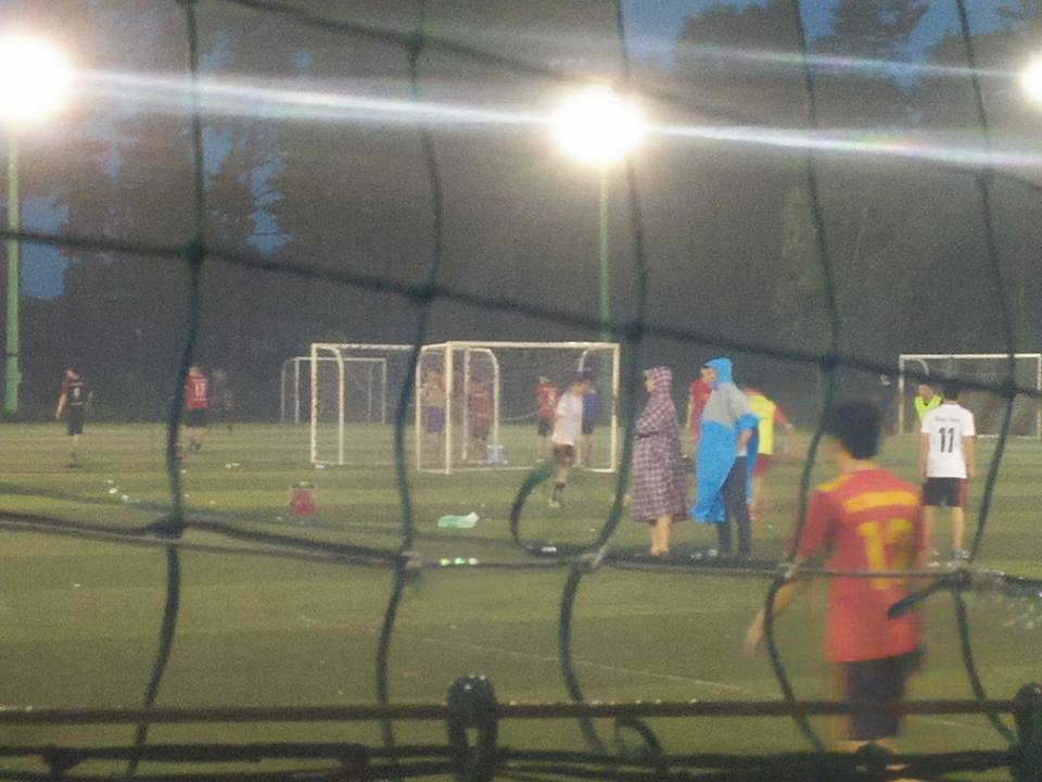 Trời mưa nhưng các cầu thủ vẫn thi đấu rất nhiệt tình, và không thể nào thiếu đi những khán giả đầy tinh thần như vậy