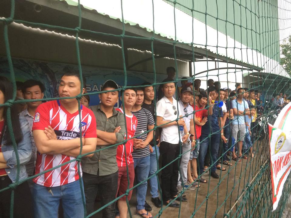 Các cổ động viên bên cạnh, cổ vũ và theo dõi những đường bóng trên đội nhà. Dẫu trời mưa vẫn chẳng thể nào ngăn cản được tình đồng hương ấm áp.