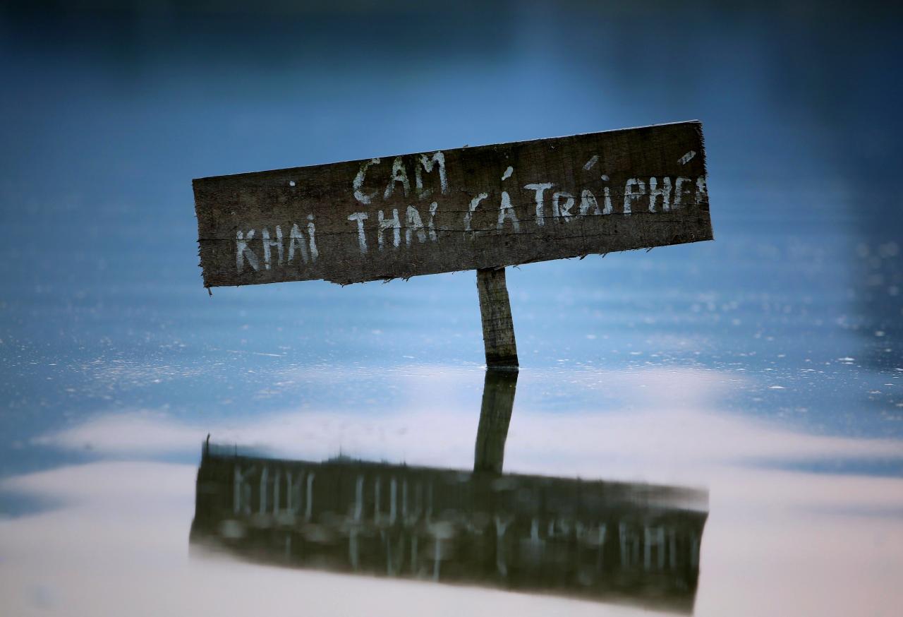 Để bảo vệ hồ nước, địa phương cắm bảng cấm khai thác cá trái phép nhằm bảo vệ những sinh vật tự nhiên trong lòng hồ – ẢNH: NGỌC DƯƠNG