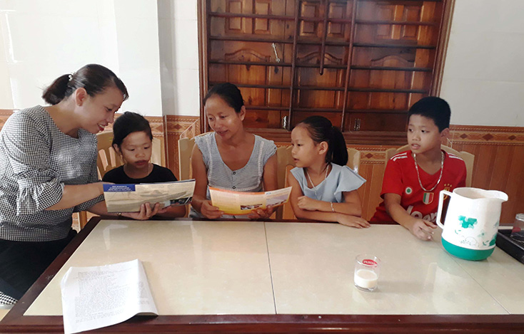 Cán bộ dân số xã Sơn Hóa đến tận nhà người dân để tư vấn, tuyên truyền về công tác dân số.