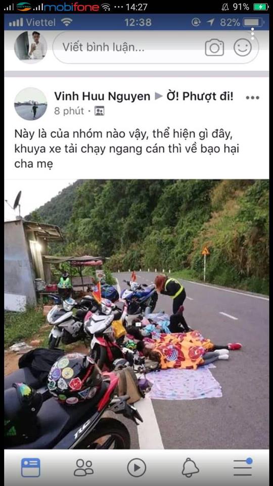 Bức hình được đăng trên các group và diễn đàn đã thu hút khá đông cộng đồng mạng quan tâm. Chỉ sau một giờ đăng tải đã ngay lập tức nhận được ”cơn mưa phẫn nộ” của dân yêu du lịch và cả cư dân mạng. Trong ảnh, một nhóm phượt đang thoải mái trải mền, áo mưa… nằm bên lề đường. Đáng nói là phần đường này là thuôc một khúc cua, và phần mà đoàn phượt nằm gần như lấn ra giữa đường.