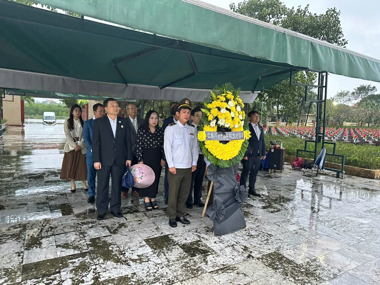 Trong khuôn khổ chuyến thăm Quảng Trị, đoàn đã trang trọng tổ chức lễ dâng hoa và dâng hương, bày tỏ lòng thành kính sâu sắc đến các anh hùng liệt sĩ đã anh dũng hy sinh vì độc lập, tự do của Tổ quốc tại Nghĩa trang Liệt sĩ Ba Dốc. Đồng thời, phái đoàn cũng viếng thăm các di tích lịch sử “địa chỉ đỏ” khác như Thành Cổ Quảng Trị, Địa đạo Vịnh Mốc, Đôi bờ Hiền Lương-Bến Hải, và Nhà tưởng niệm Đại tướng Võ Nguyên Giáp. Một điểm nhấn đặc biệt là việc đoàn đã thành kính dâng hương tưởng niệm liệt sĩ Lê Trung (một bác sĩ quân y người Nhật Bản, đã hy sinh trong khi thực hiện nhiệm vụ tại Lào) ngay tại Nghĩa trang Liệt sĩ Ba Dốc.