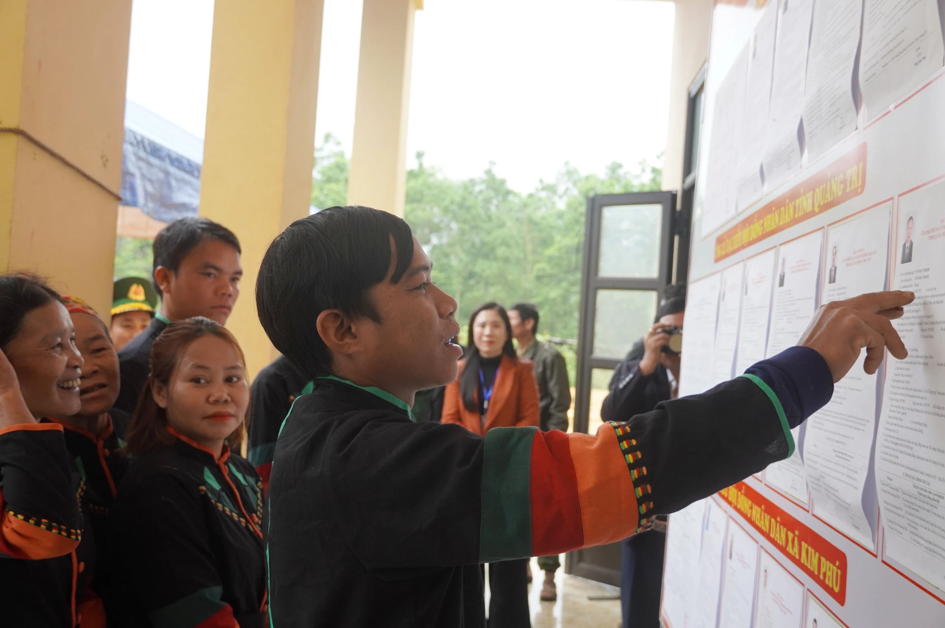 Các cử tri người Rục cẩn trọng nghiên cứu danh sách ứng cử viên được niêm yết công khai tại các điểm bầu cử. – Ảnh: X.P