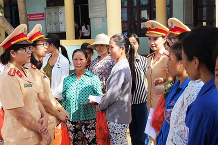 Cán bộ chiến sĩ nữ CSGT Quảng Bình thăm hỏi, tặng quà những phụ nữ khó khăn ở Quảng Hải trong ngày Phụ nữ Việt Nam