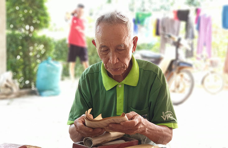 Cụ Đặng Văn Duyên, hậu duệ của vị quan thanh liêm Đặng Đại Lược ở xã Mai Thủy (Lệ Thủy) lật giở lại tấm gia phả hiển hách của dòng họ.