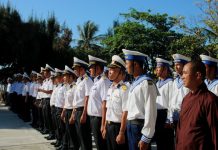 Hàng quân nghiêm trang chào cờ Tổ quốc