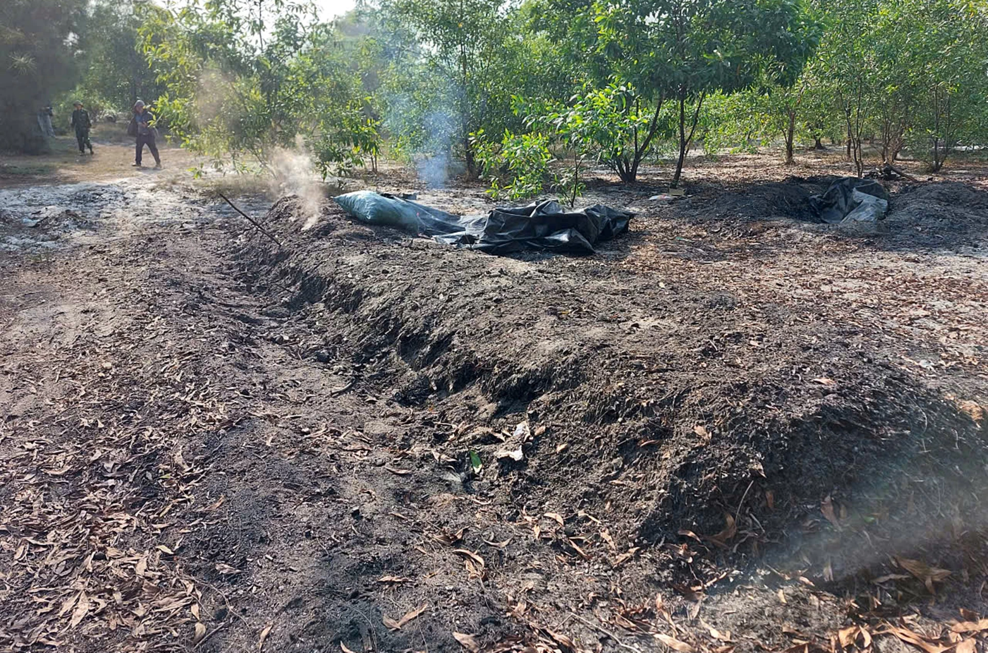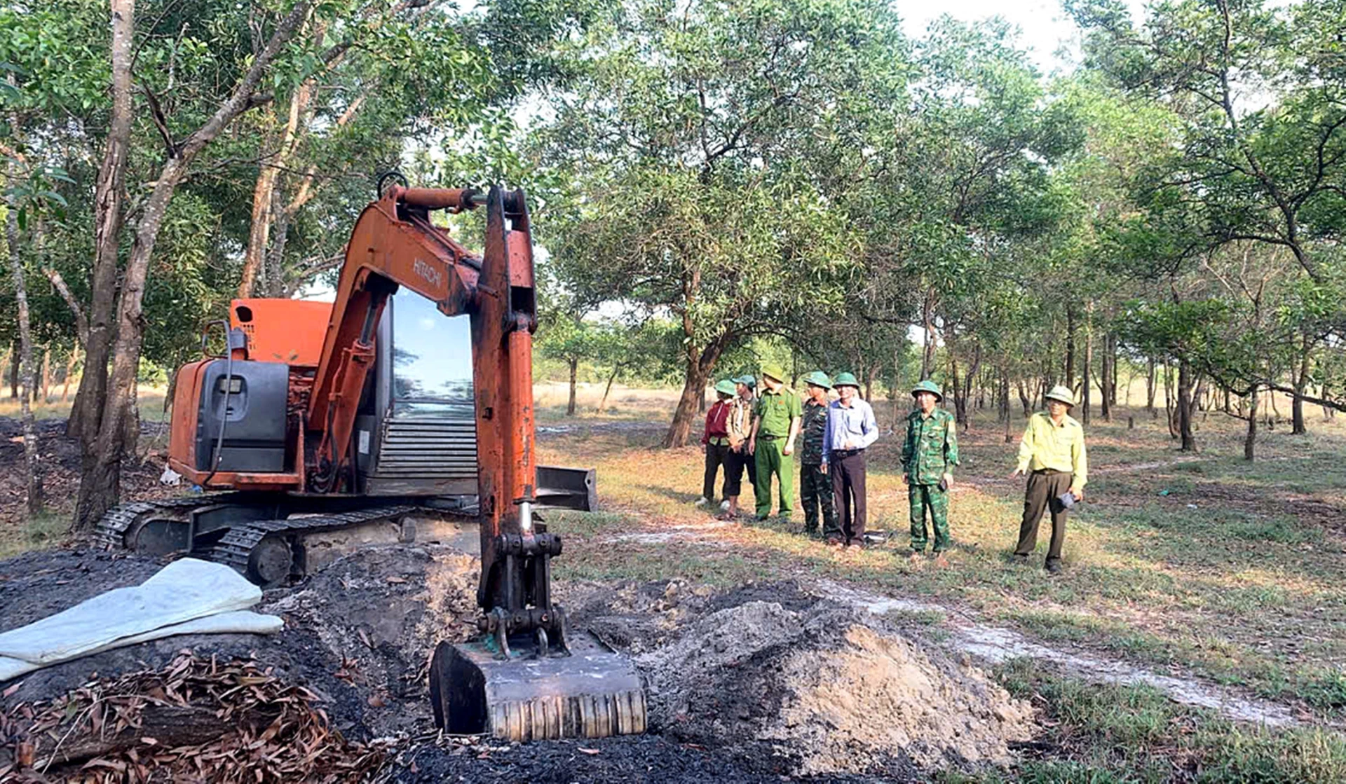 Lực lượng chức năng đã phát hiện một hầm đốt than hoạt động phi pháp tại xã Mỹ Thủy. Ảnh: L.A