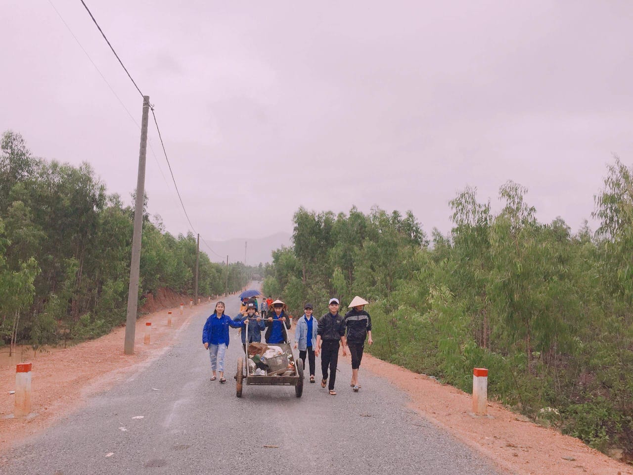 Hai tuần một lần, nhóm các em học sinh trong trang phục áo xanh đoàn viên tranh thủ nhặt ve chai ven đường hay trong các trường tiểu học, trung học trên địa bàn huyện, xin ở các quán ăn. Số tiền dành dụm được để dành để mua quà giúp đỡ cho người nghèo có hoàn cảnh đặc biệt khó khăn.